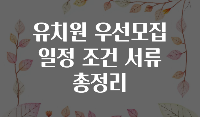 📌 참고: 우선모집 기준과 대상자 범위는 각 지역 교육청과 유치원마다 차이가 있을 수 있으니 반드시 해당 시·도 교육청 홈페이지(예: 서울특별시교육청 - www.sen.go.kr)나 해당 유치원 공지사항을 확인하세요. (한국교육개발원, 보건복지부 공식 사이트도 함께 참고 권장)