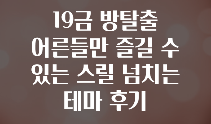 19금 방탈출 어른들만 즐길 수 있는 스릴 넘치는 테마 후기## 어른들을 위한 특별한 방탈출, 왜 이렇게 매력적일까? 🔥🕵️♂️혹시 “일상에서 벗어나 진짜 어른들만의 스릴을 경험하고 싶다!”는 생각한 적 있으신가요? 😏 요즘 19금 방탈출 게임이 크게 주목받고 있습니다. 청소년 출입 금지인 만큼, 성인만 즐길 수 있는 섬세한 스토리와 도전적인 퍼즐, 그리고 강렬한 몰입감이 특징인데요.이 콘텐츠에서는 19금 방탈출의 매력 포인트와 실제 경험을 바탕으로 한 추천 테마, 그리고 플레이 전 꼭 알아두면 좋은 팁까지 모두 자세히 소개해 드립니다! 🎉✅ 19금 방탈출 테마의 핵심 매력 5가지 🌶️1. 성인만을 위한 강렬한 스토리 전개성인 취향에 맞는 미스터리, 스릴러, 로맨스 등 다양한 장르를 통해 몰입..