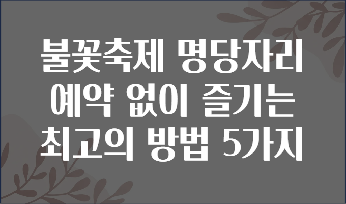 불꽃축제 명당자리 예약 없이 즐기는 최고의 방법 5가지 🎆🔥✨여러분, 매년 여름과 가을이 되면 전국 곳곳에서 화려한 불꽃축제가 펼쳐집니다. 하지만 인기 명당자리들은 예약이 필수여서 아쉽게도 놓치거나 뒷자리에서 관람하는 경우가 많죠. 😢 혹시 ‘예약 없이도 좋은 자리에서 불꽃놀이를 즐기는 방법은 없을까?’ 고민해본 적 있나요? 오늘은 그런 고민을 한 방에 해결해 드릴 아주 특별한 꿀팁을 소개합니다! 🎉🎯 소개: 불꽃축제 명당을 예약 없이도 즐길 수 있다고?불꽃축제는 아름다운 공연과 함께 주변 분위기까지 맛볼 수 있어 최고의 힐링 타임인데요, 예약 없이 즐기려다 보면 도로 교통 체증, 인파, 자리 찾기 난감함으로 고생한 경험이 한 번쯤 있으실 겁니다. 하지만 사실 방법만 알면 예약 없더라도 현명하게..